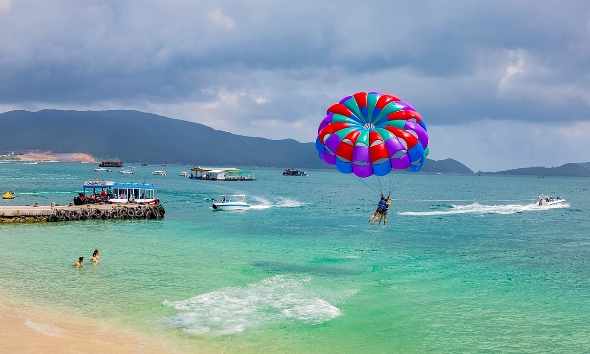 Lá cờ gồm một tam giác vuông xếp chồng lên tứ giác, hình dáng khác lạ giúp du khách dễ dàng nhận ra. Viền cờ xanh đậm, nền cờ đỏ thắm với hai góc nhọn hướng sang phải. Trên cờ có hai hình trang trí màu trắng tượng trưng cho Mặt Trời nằm ở nửa dưới cờ và Mặt Trăng nằm ở nửa trên.