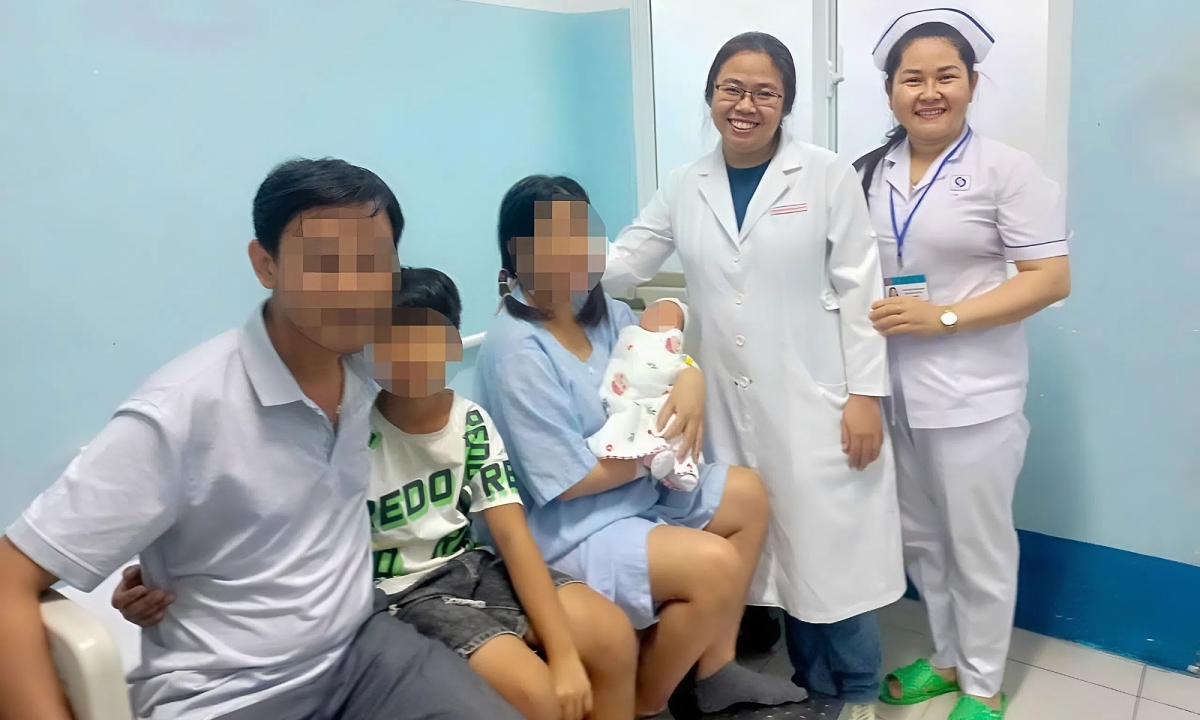 Bác sĩ Yến Thu (giữa) phẫu thuật nội soi lấy vòng tránh thai cho bà Sương. Ảnh: Tuệ Diễm